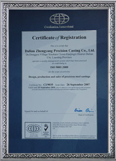 公司已经通过ISO9000质量管理体系认证,通过我们的不断努力,继续为国外客户提供质量上乘的铸件,周到满意的服务。我们将竭诚欢迎来自各界朋友的莅临指导、参观和业务洽谈,并尽我们最大的能力提供给每一位客户优质的服务。